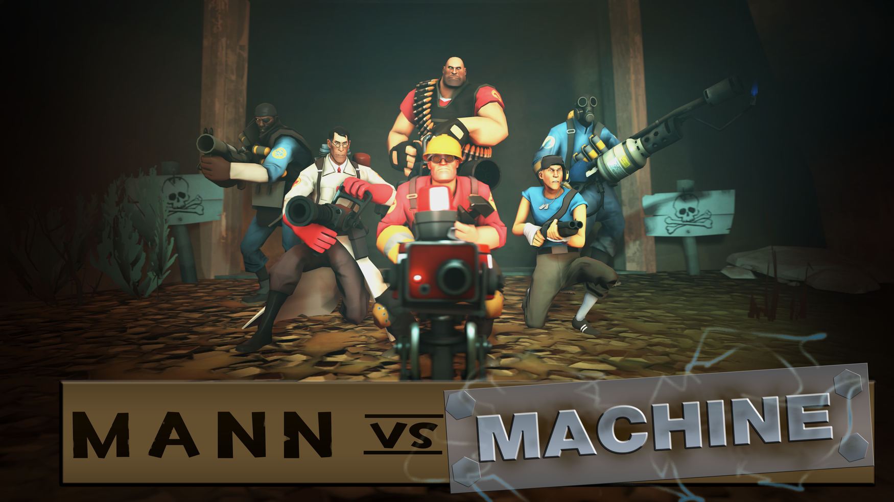 In the MVM update TF2 gained a story line created for the purpose of explaining the new game mode this story was about the third faction the grey team creating an army of robots to kill the red and "blu"teams.in the creation of the attacks from robots teams red and "blu" joined forces to stop the grey teams robots from destroying mann co the weapons creation depot.